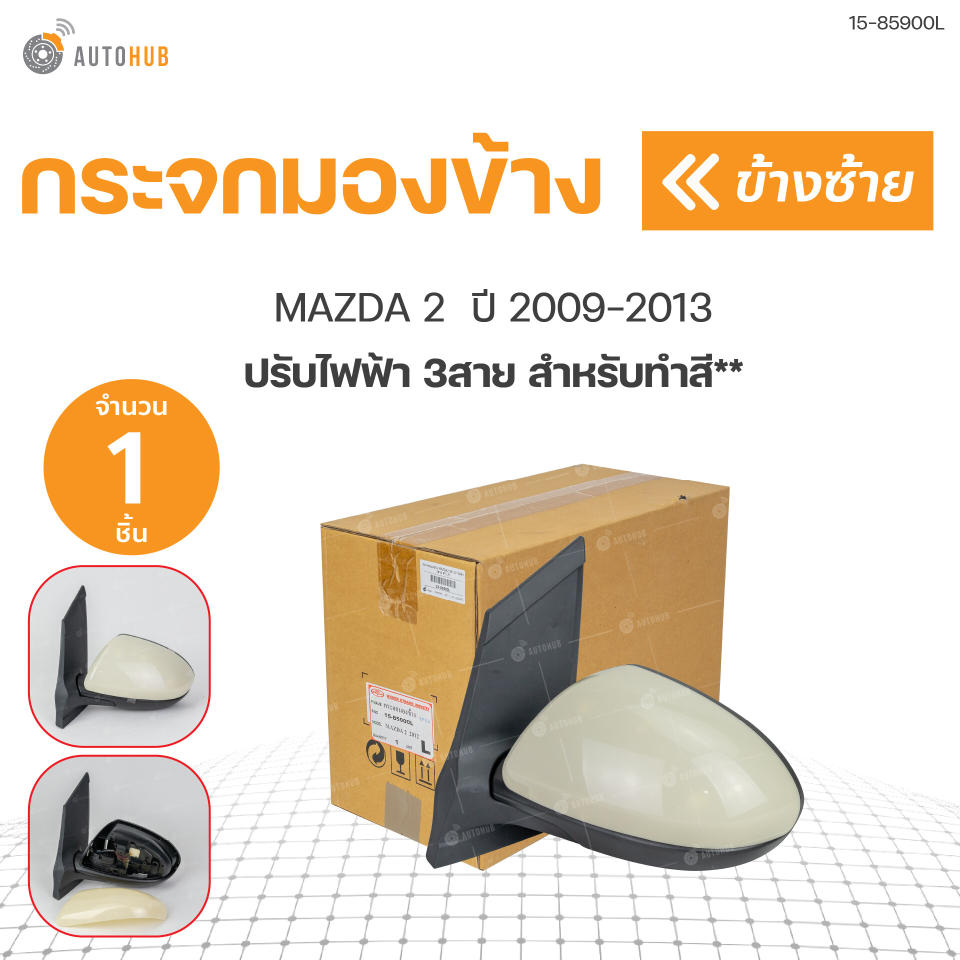กระจกมองข้าง MAZDA2 09-13 ไฟฟ้า 3สาย ดำ LH