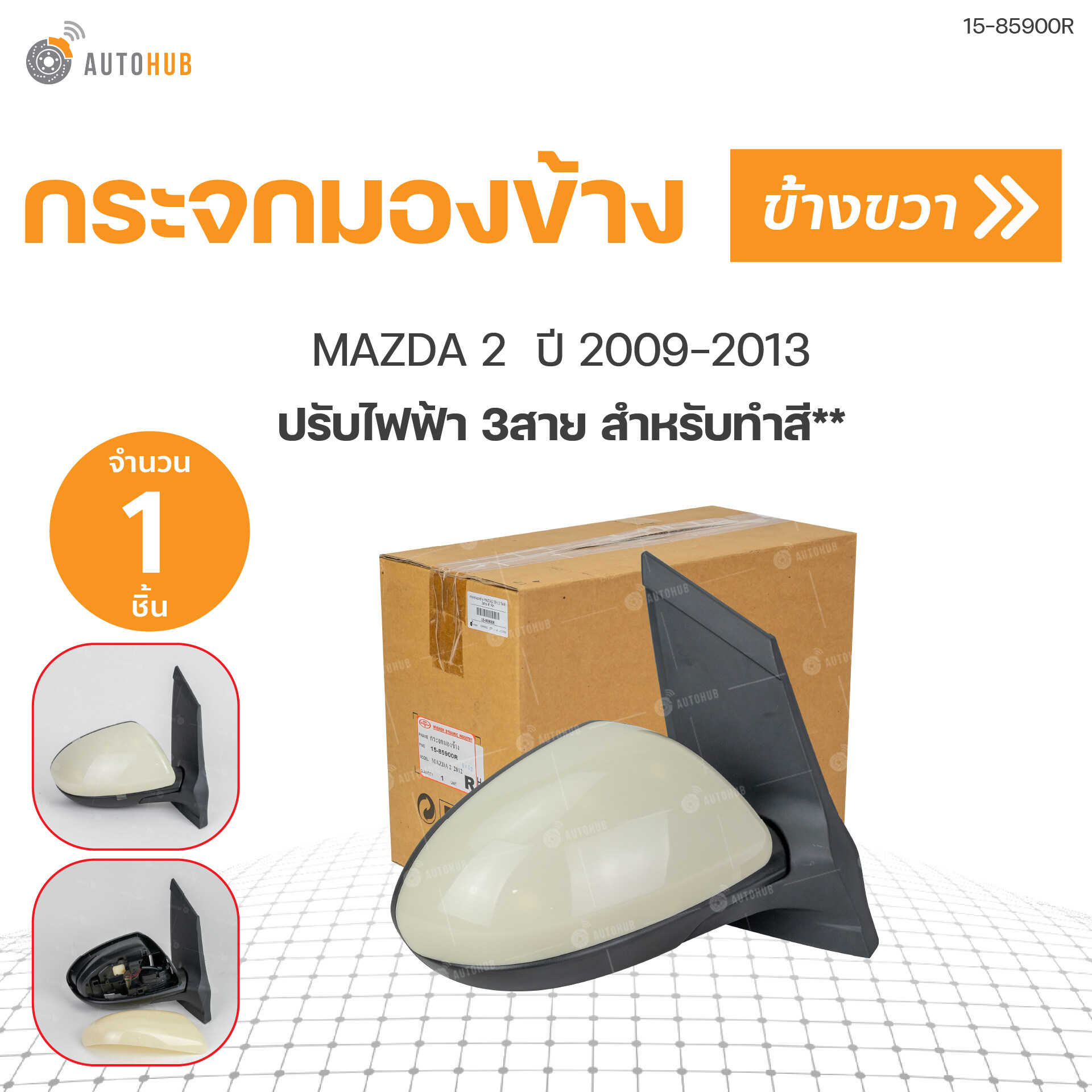 กระจกมองข้าง MAZDA2 09-13 ไฟฟ้า 3สาย ดำ RH