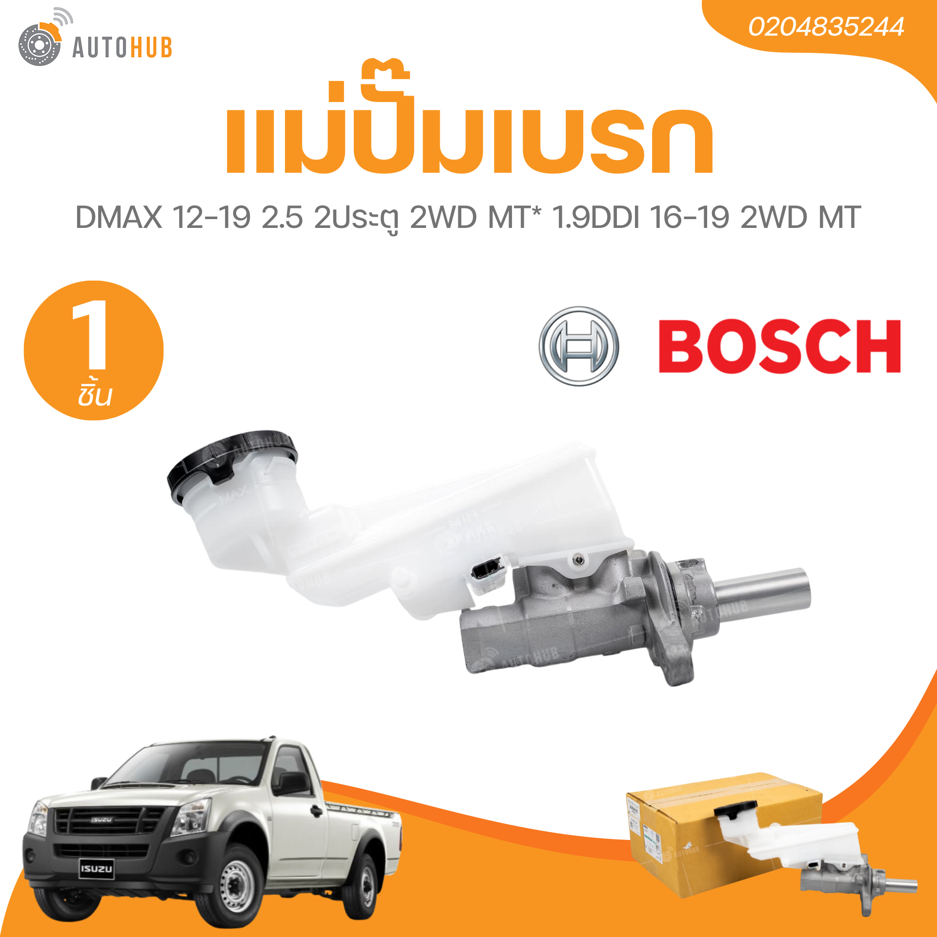 แม่ปั๊มเบรก DMAX 12-19 2.5 2ประตู 2WD MT, 1.9DDI 16-19 2WD MT 2รูออกแป๊ป น๊อตM10 7/8" แท้ติดรถ